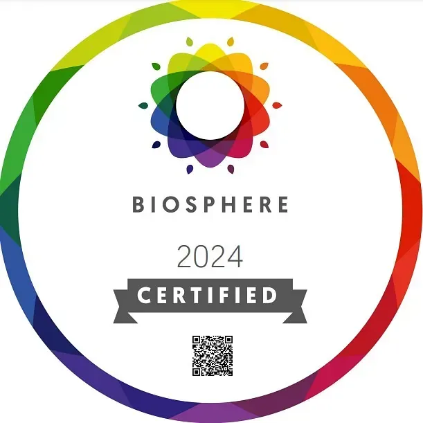 Hotellille myönnettiin vuonna 2024 arvostettu Biosphere sertifikaatti sekä Sustainable Travel Finland-merkki, jotta voit olla varma, että teemme oman työmme kestävän matkailun eteen myös sinun puolestasi:
